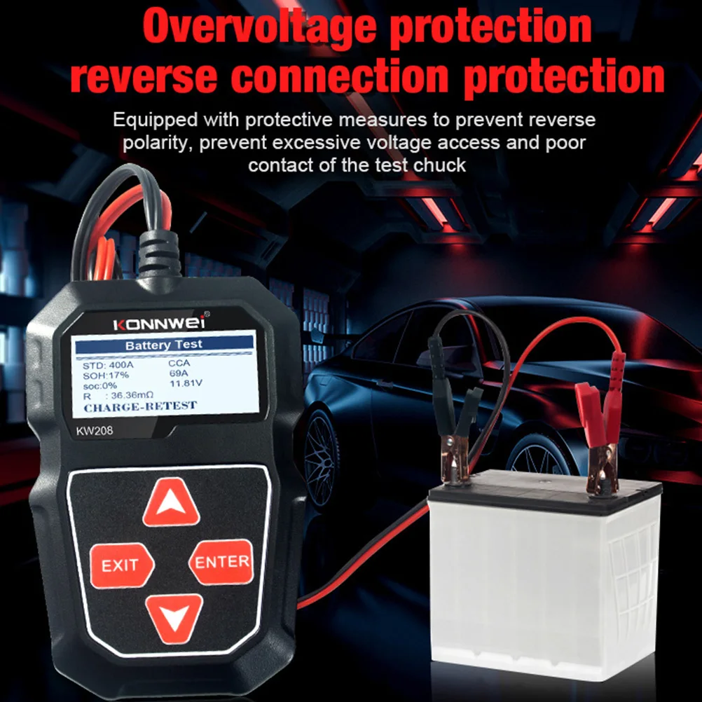 Тестер автомобильных аккумуляторов KONNWEI KW208, 12 В, 100-2000CCA
