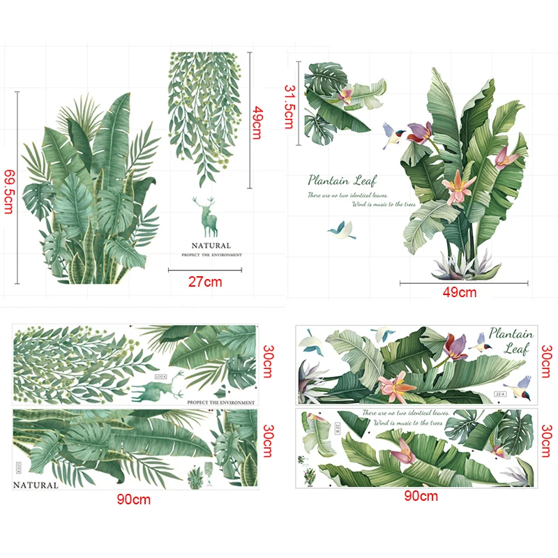 Тропические растения, банан, лист, настенные наклейки для гостиной, спальни, фоновая Наклейка на стену, водонепроницаемые домашние декоративные настенные постеры