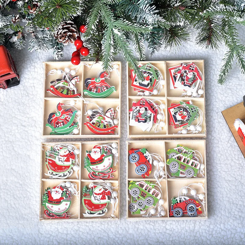 12 шт. Рождество Санта автомобиля деревянный кулон рождественские у...