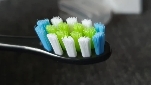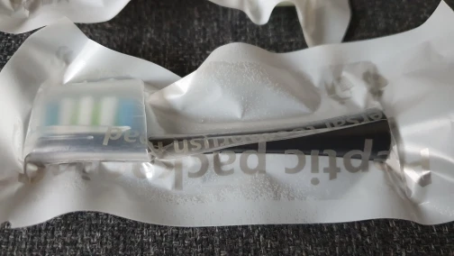 Каждая насадка упакована в в индивидуальный вакуумный пакет. В комплекте есть пластиковая крышечка, чтобы закрывать щетину во время путешествий. На Oclean One встаёт идеально: без щелчка, но плотно. Пластиковая часть, в которую вставлена щетина тоньше, чем на оригинальной насадке и гладкая, без насечек для чистки языка. Сама щетина мягкая, пучки держат форму хорошо.