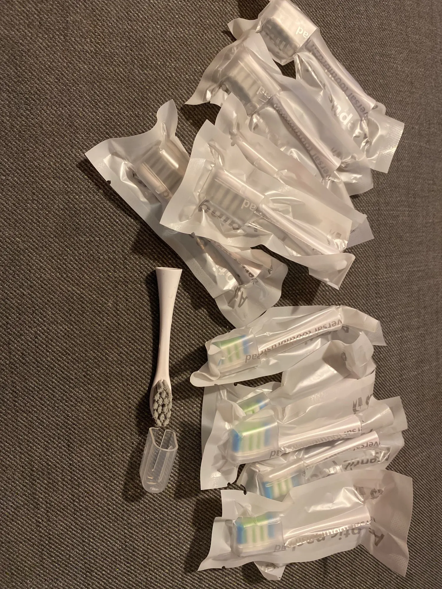 Выглядит как на картинке yhe, довольно быстрая доставка, около пары недель, каждая кисть имеет свою собственную упаковку, подходит как для Oclean Z1, так и для F1