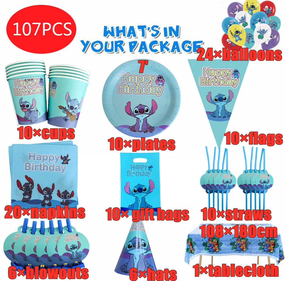 Набор одноразовой посуды Disney Lilo Stitch принадлежности для тематической вечеринки, бумажный флагак, украшения для дня рождения