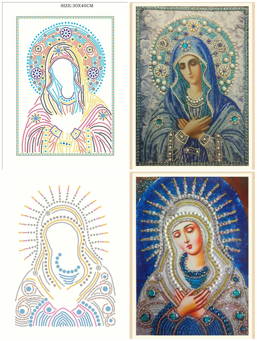 Картина из страз Huacan сделай сам, вышивка, икона, религия, особая форма, мозаика из страз, Дева Мария, ручная работа, подарок, Декор