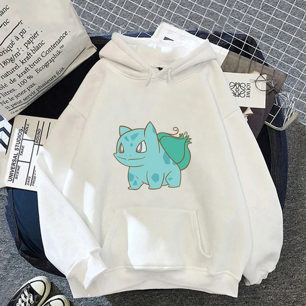 Осенняя толстовка с капюшоном Покемон Kawaii Bulbasaur женская одежда Аниме поло с мультяшным капюшоном смешной принт теплые хлопковые пуловеры свитшоты