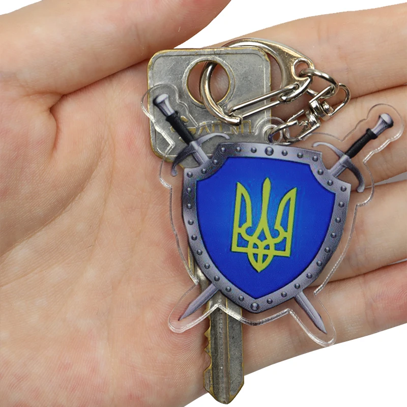 Двусторонний брелок для автомобиля Tryzub, модный акриловый автомобильный брелок с украшением в виде флага Украины и символа тридана, ювелирное украшение в стиле унисекс, подарочное украшение