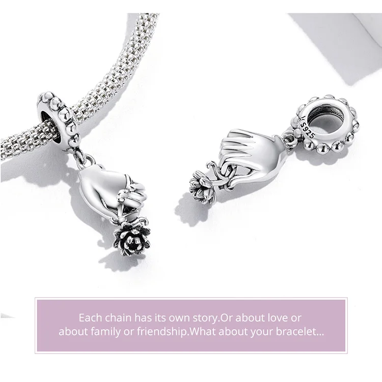 Bamoer, циркон, Стерлинговое Серебро 925 пробы, мизинец, клякса, кулон в виде руки, Шарм для оригинального браслета, женский браслет, сделай сам, модные ювелирные изделия