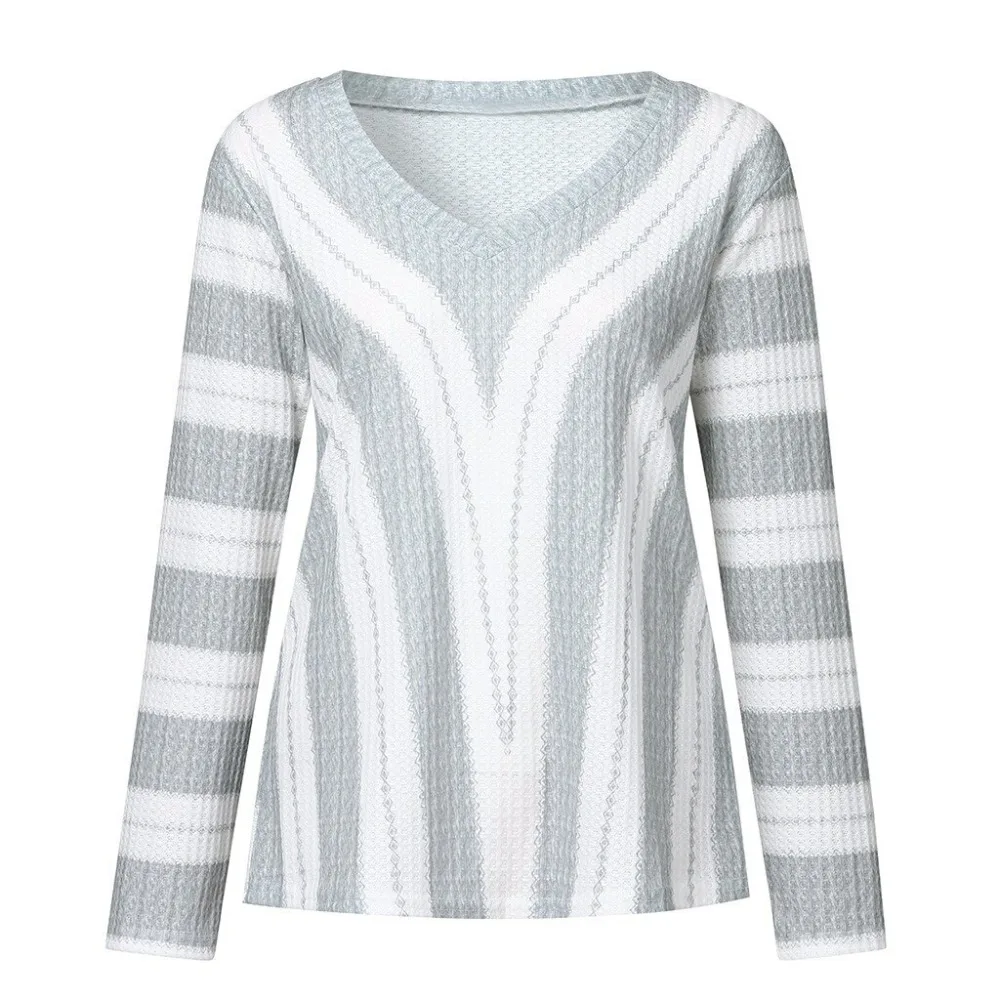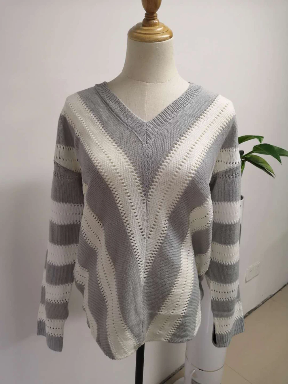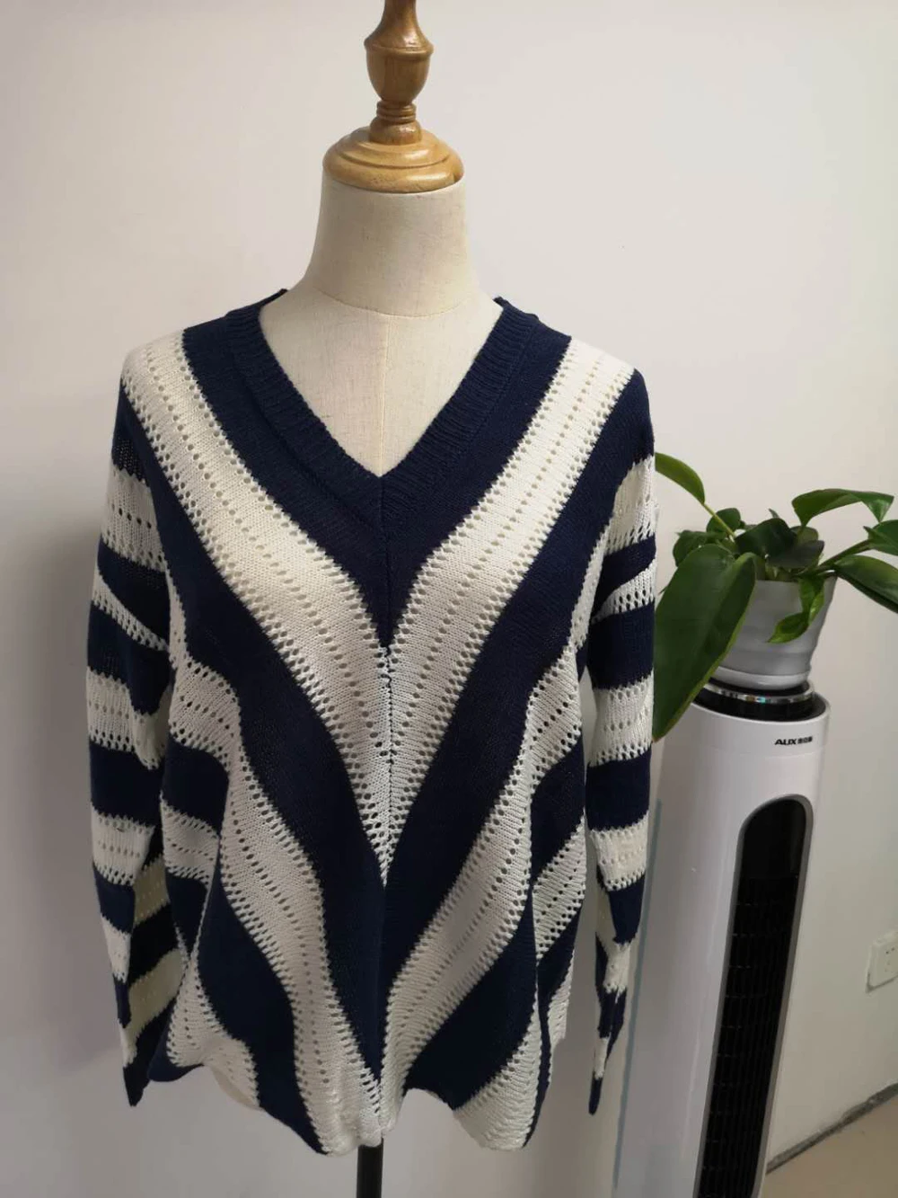 Женский свитер с принтом и V-образным вырезом, осеньзима, Y2K, повседневный тонкий свитер в полоску с длинными рукавами, свободная уличная одежда, женский свитер