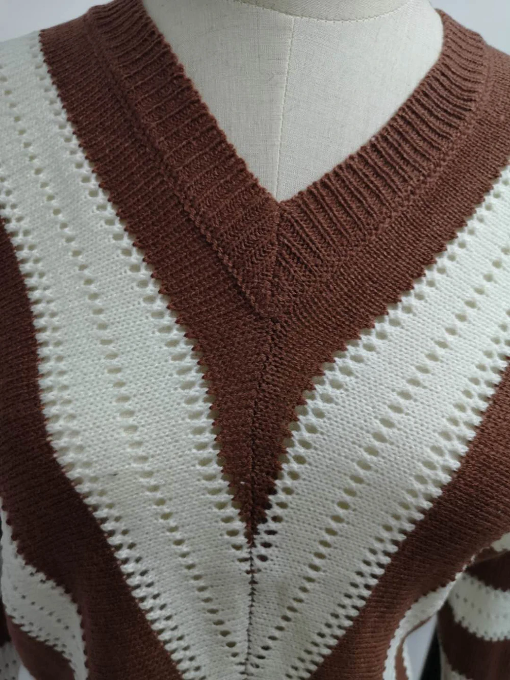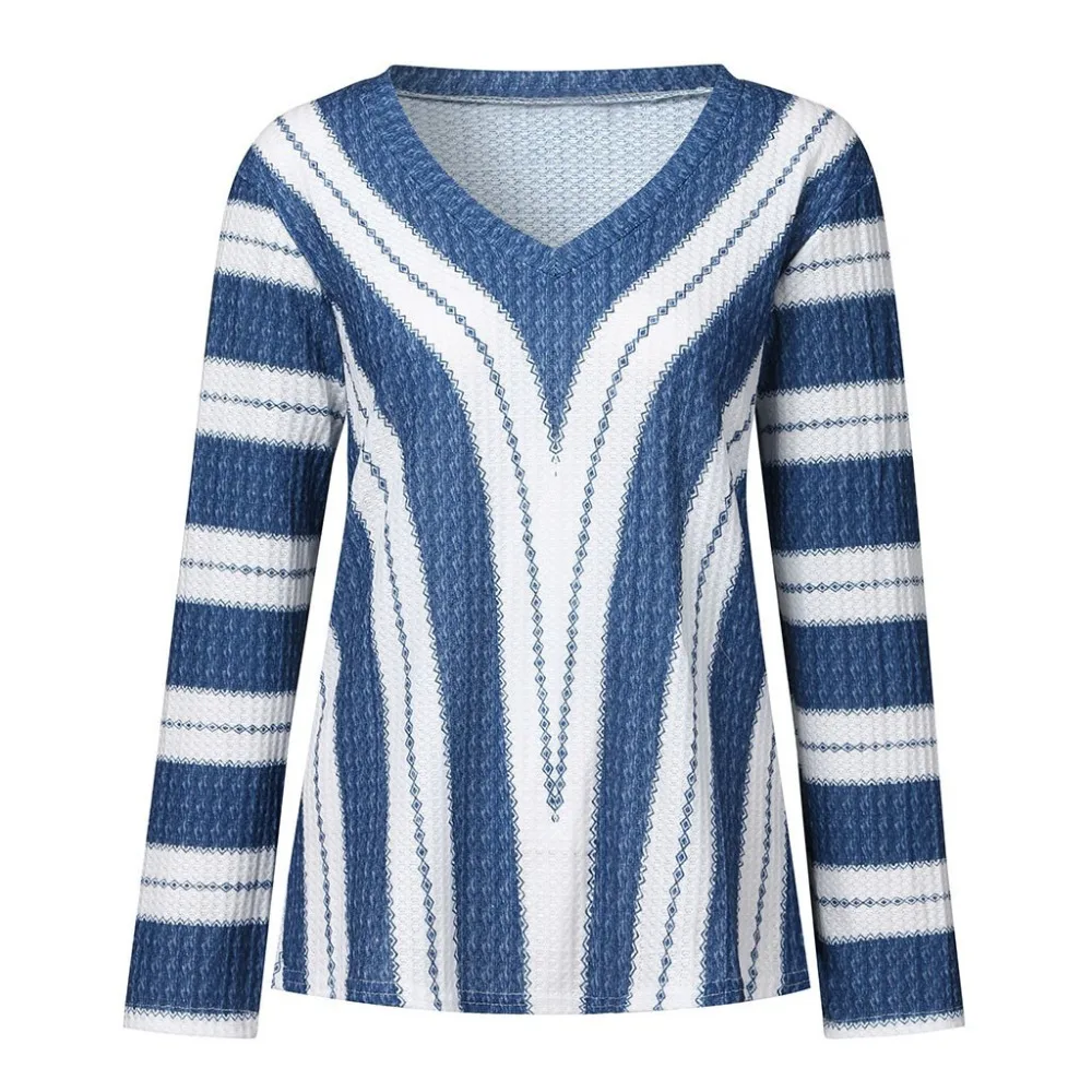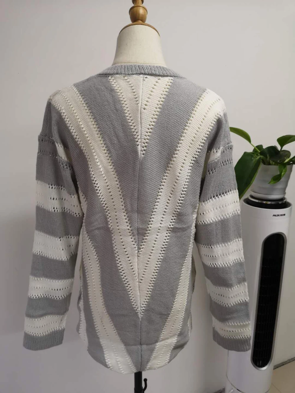 Женский свитер с принтом и V-образным вырезом, осеньзима, Y2K, повседневный тонкий свитер в полоску с длинными рукавами, свободная уличная одежда, женский свитер