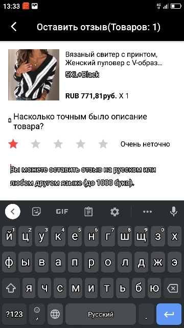 На первом фото,то что хотелось получить, описание товара. На втором,то что получила,и на третьем,то,что вы заявляете.Написано,что это вязаный свитер....написали бы, синтетическая туника,я бы и брать не стала, даже за 300р.Как оформить возврат!