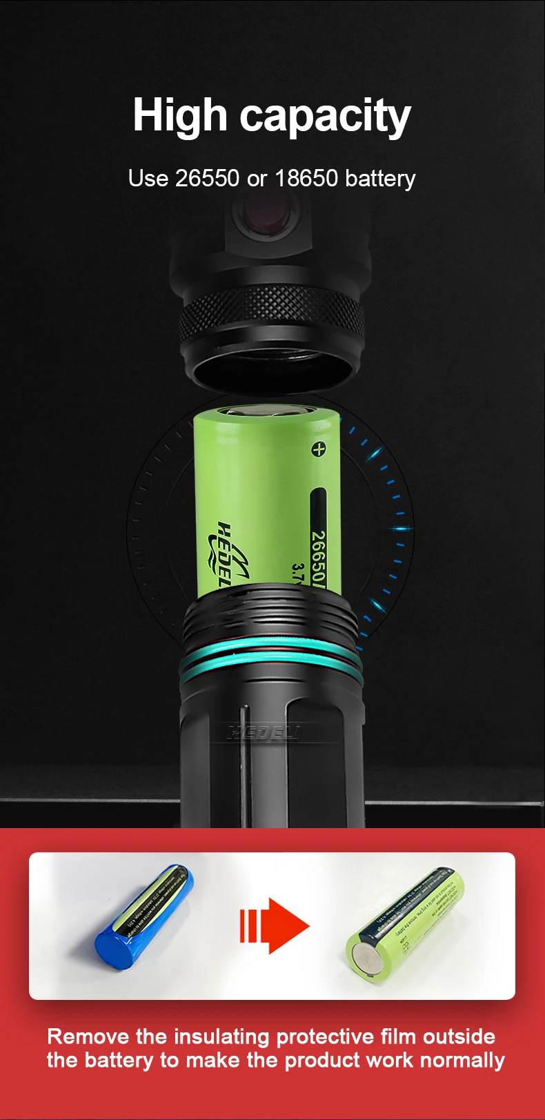 ● Время освещения: аккумулятор 18650 3 - 4 часа; Аккумулятор 26650: 6-10 часов.● Режим переключения: 3 режима: 50% - 70% - 100%● Метод масштабирования: фиксированный фокус● Люмен: 700000 люменов● Цвет излучения: белый светильник