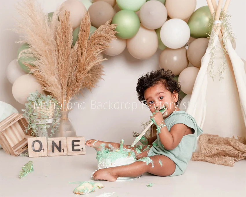 Фон для фотосъемки Mehofond розовый цветочный воздушный шар малышка девочка мальчик первый день рождения торт разбивать Портрет фон фотостудия