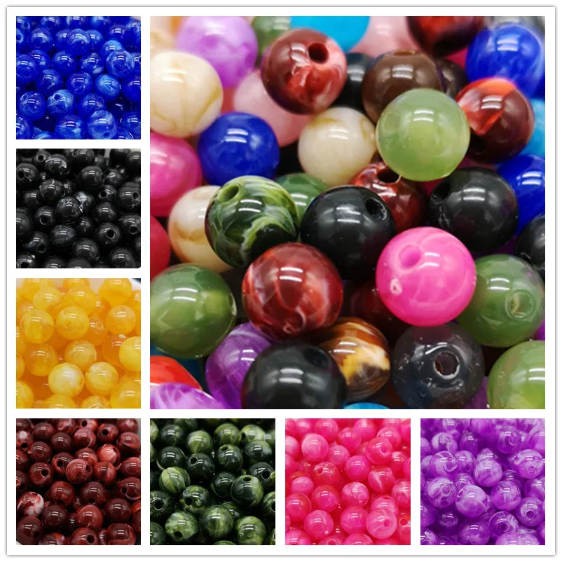 Круглые акриловые бусины, с имитацией натурального камня, 6, 8, 10 мм