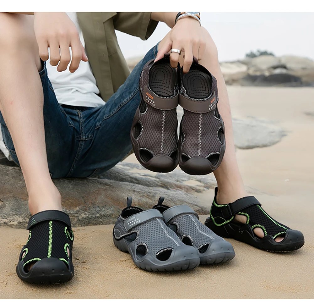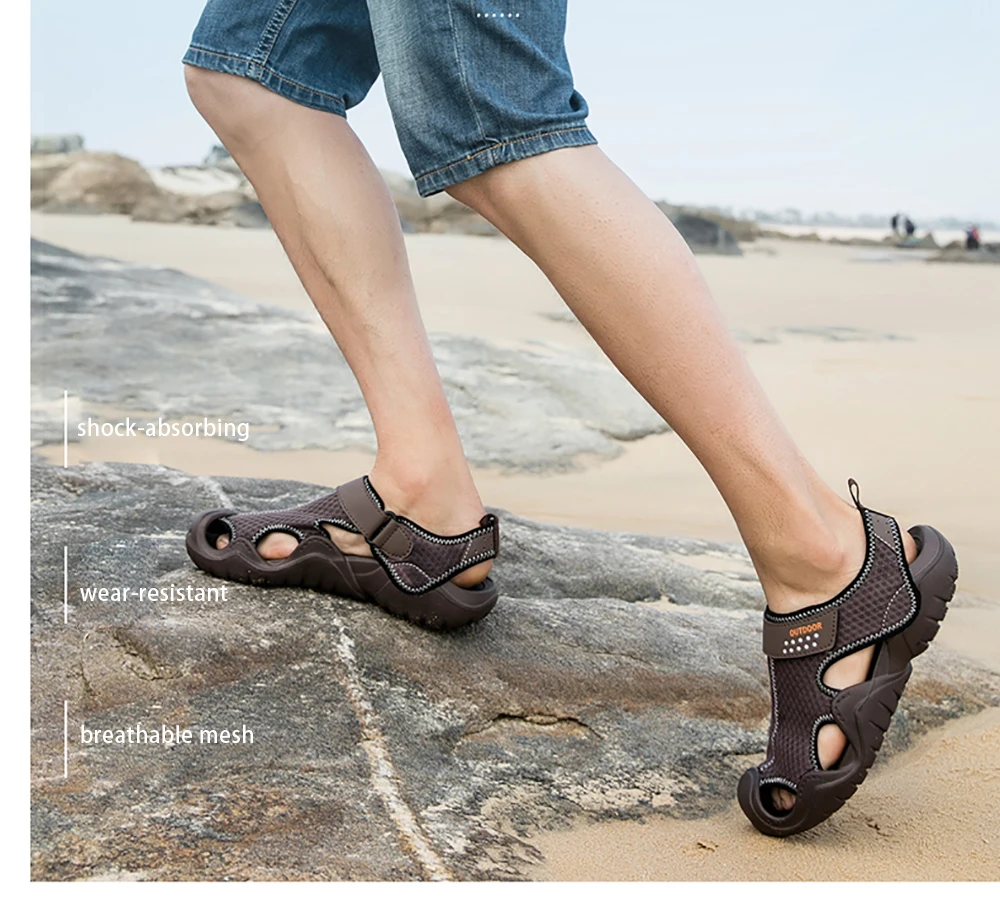 Мужские сандалии сетчатые, легкие пляжные сандалии для отдыха на от...