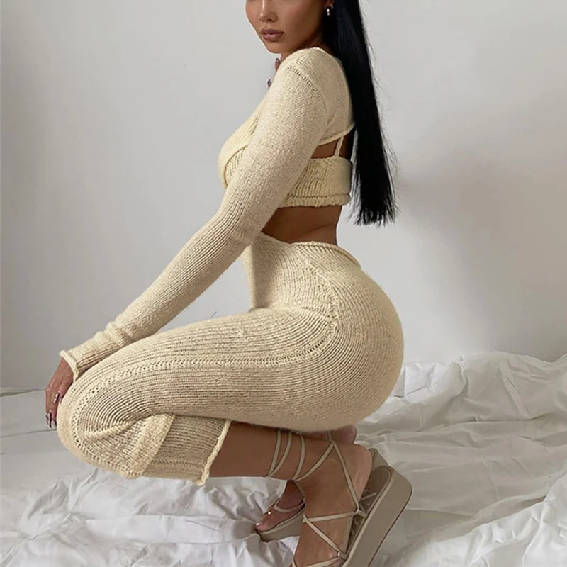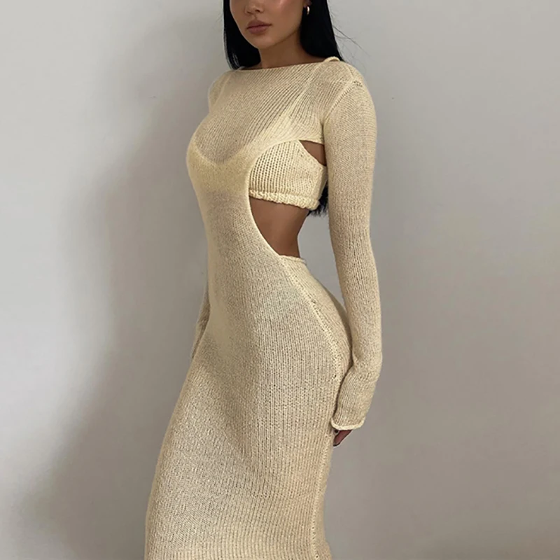 Женское трикотажное платье-двойка, Осеннее трикотажное платье с прозрачной юбкой и коротким топом без рукавов, комплект из вечерние предметов