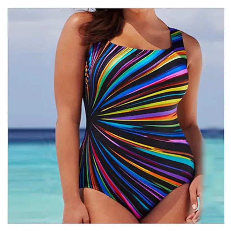 Сексуальные Полосатые цельные большие купальники, закрытый женский ...