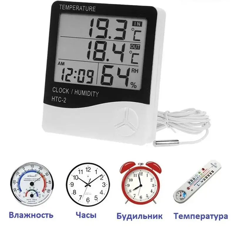 HTC-2 цифровой термометр, гигрометр, метеостанция, измеритель температуры и влажности, настенные часы для помещений, датчик, ЖК-