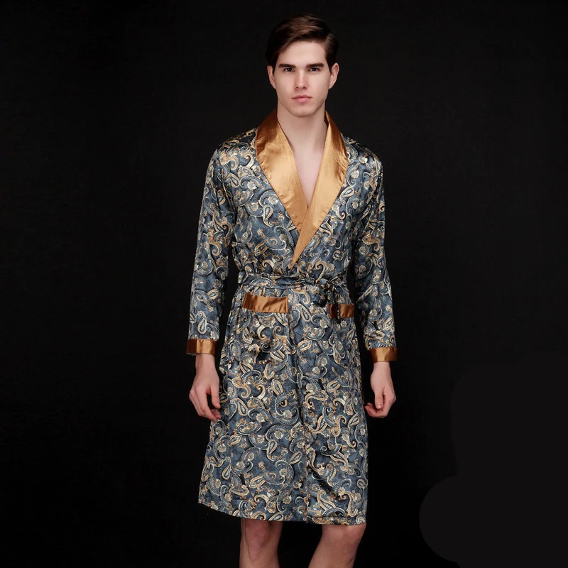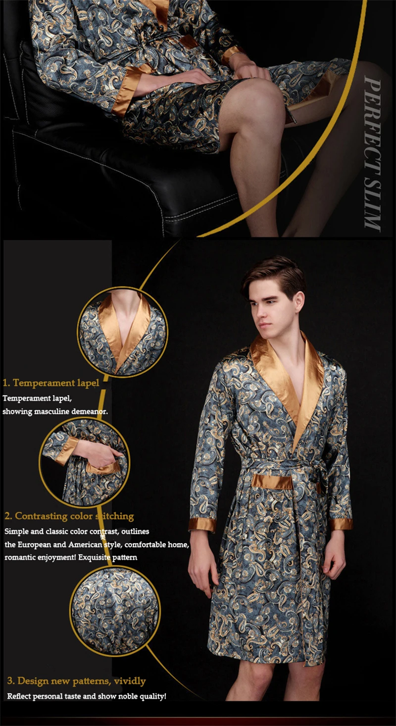 Шелковые халаты с принтом пейсли для мужчин, атласная одежда для сн...