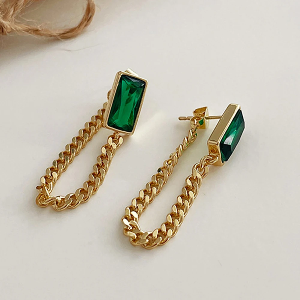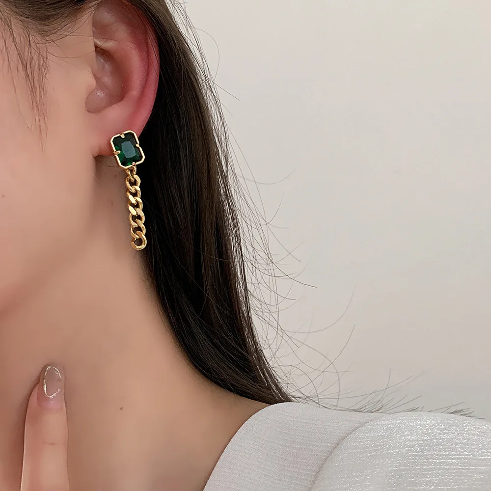 Новые зеленые Висячие серьги для женщин, трендовые серьги-цепочки из кубинской цепи для женщин, подарок для девочек, ювелирные изделия 2021, тренд KBE107