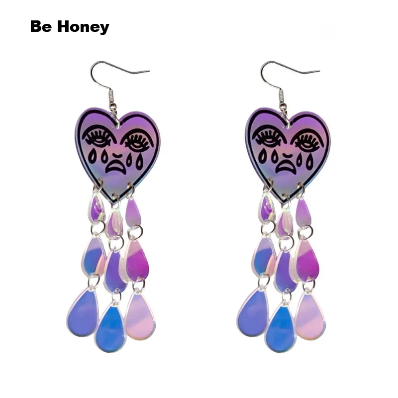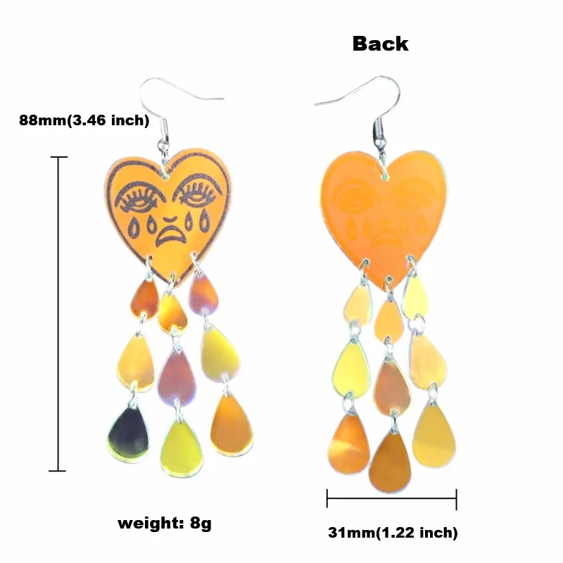 Модные серьги-подвески в форме сердца и плача с каплевидными клипсами, длинные подвесные акриловые серьги для женщин, очаровательные Эффектные серьги, модные