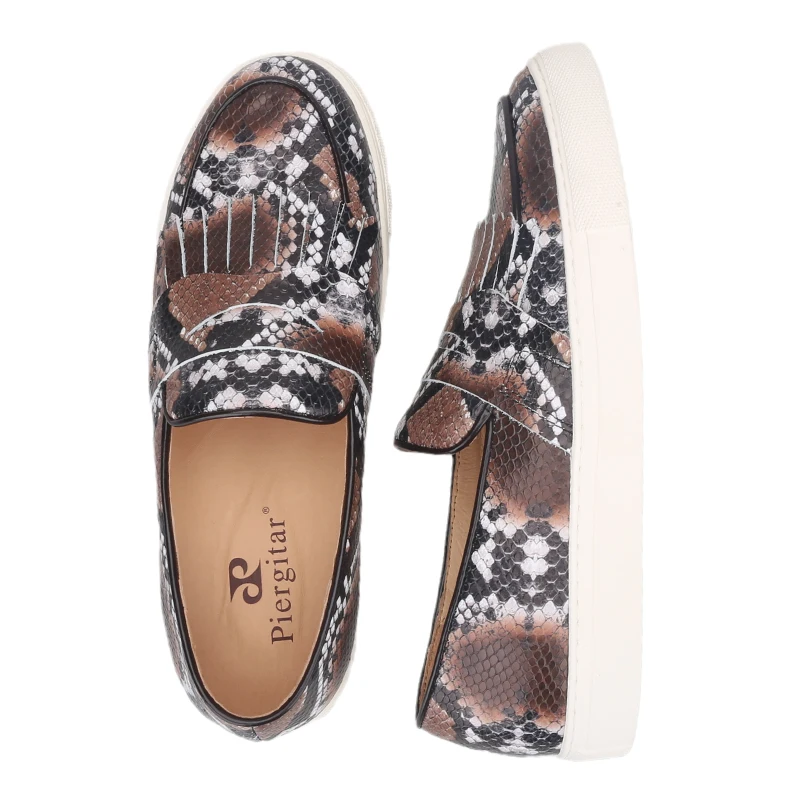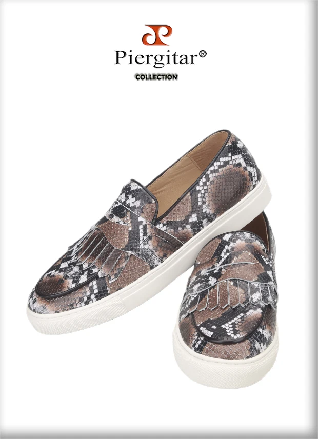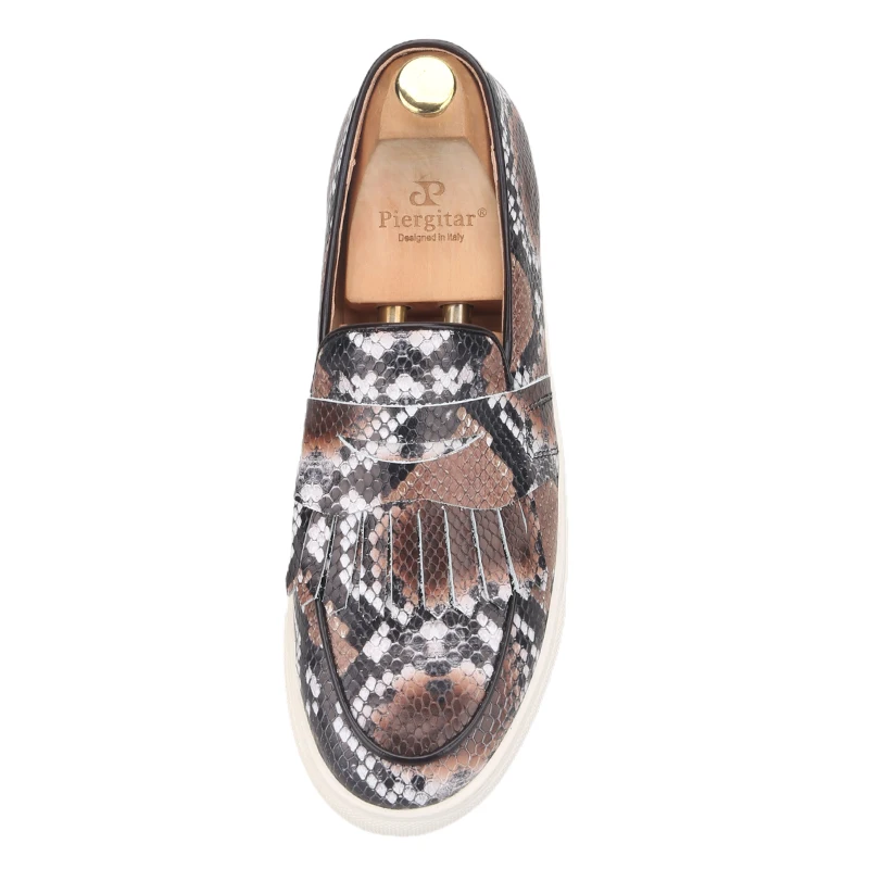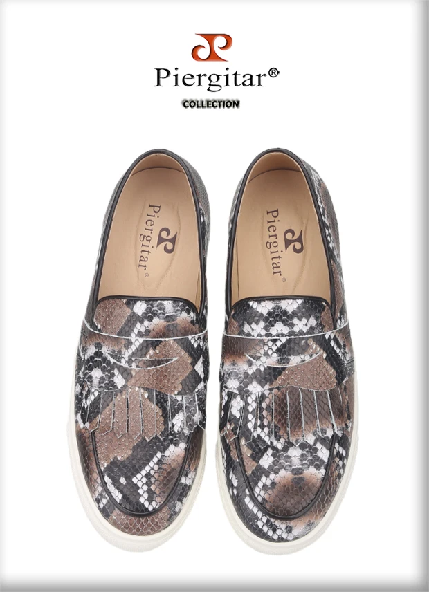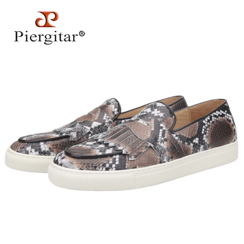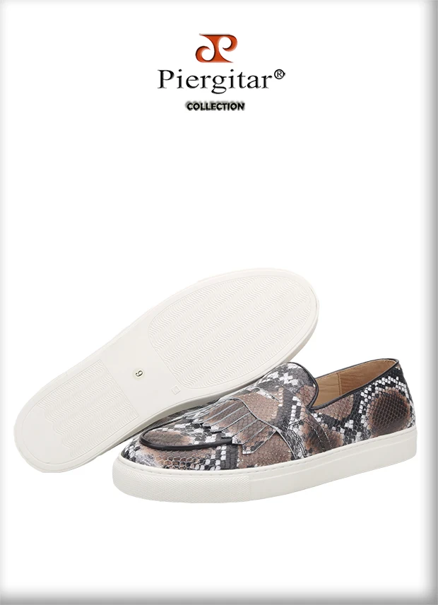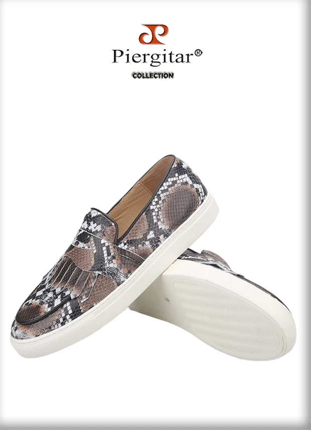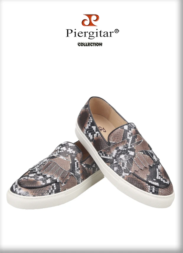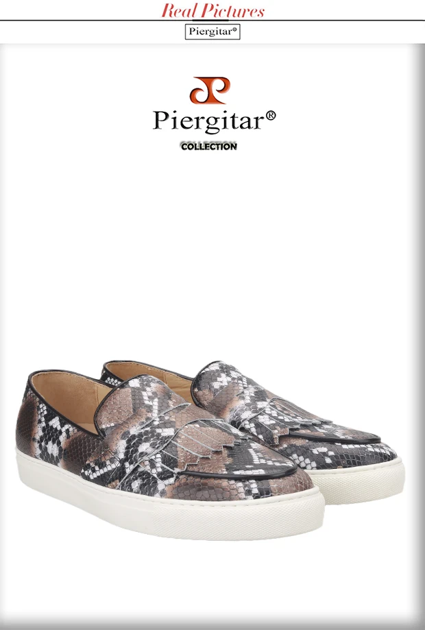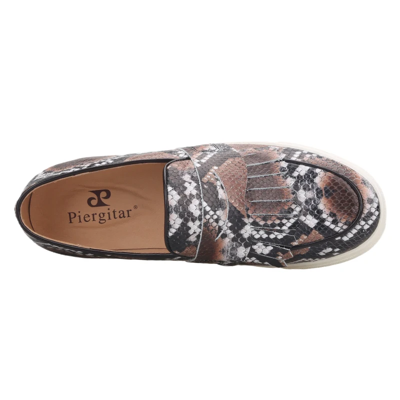 Летняя дизайнерская мужская повседневная обувь Piergitar с узором в виде змеи, мужские кроссовки ручной работы из коровьей кожи с дышащей стелькой на белой подошве, 2021