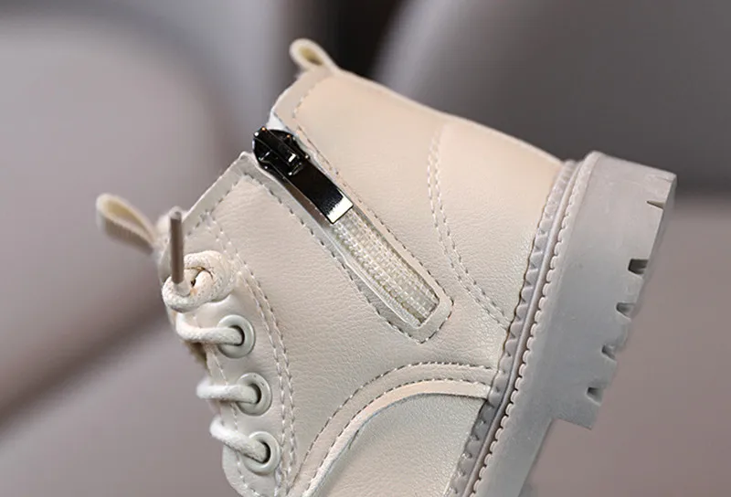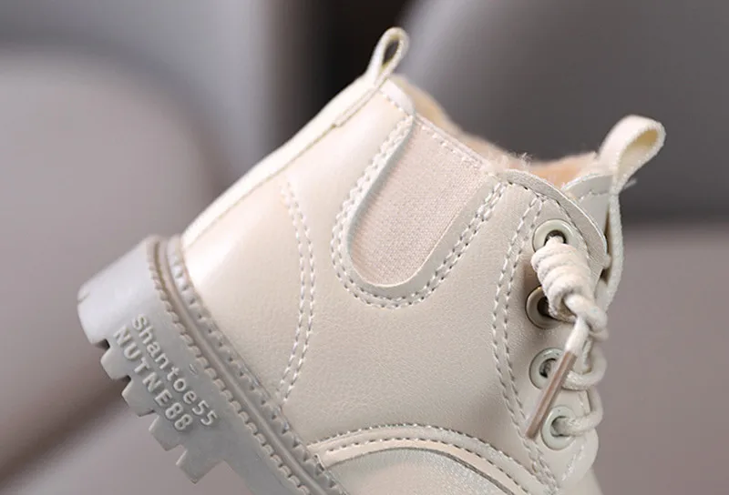Осенне-зимние теплые ботинки Martin с бархатной подкладкой, детская обувь для девочек, однотонные модные зимние ботинки, детская обувь из искусственной кожи для мальчиков