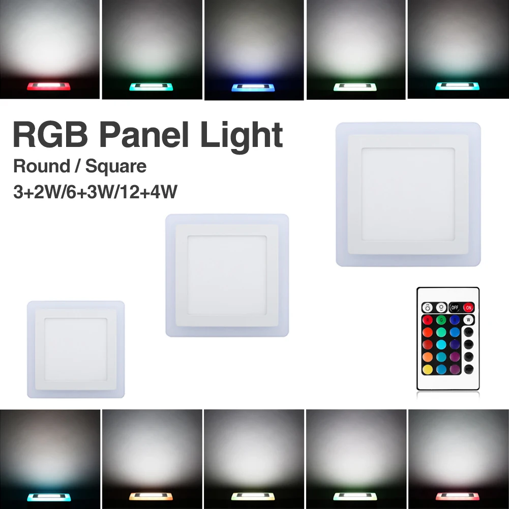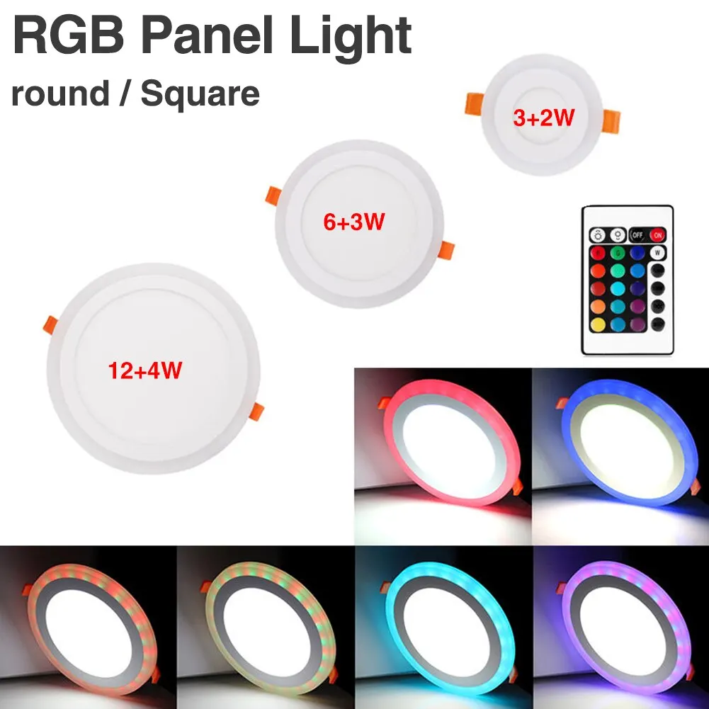 Встраиваемая круглая квадратная Светодиодная лампа RGB, 5-16 Вт, 85-265 В переменного тока светодиодный Светодиодная лампа для спальни, кухни, ванной, комнатное светодиодное точечное освещение + пульт дистанционного управления