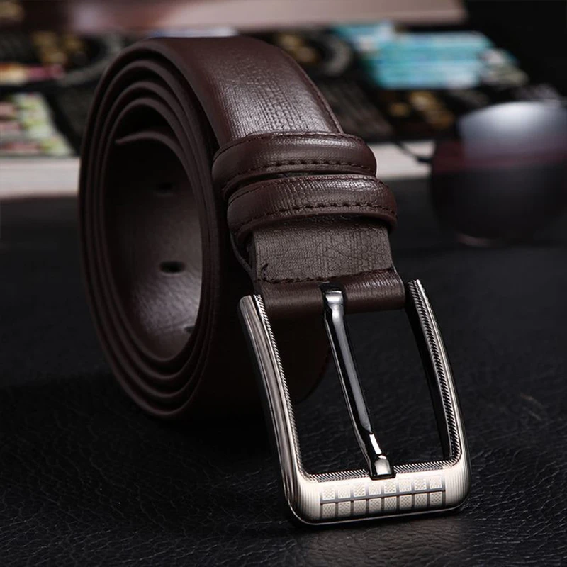 Мужской кожаный пояс с пряжкой для джинсов из сплава, Модный высоко...