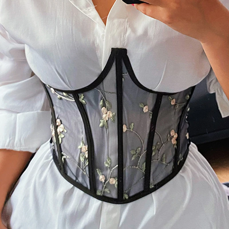 Женский корсет для талии, сетчатый корсет с цветочной вышивкой в фо...
