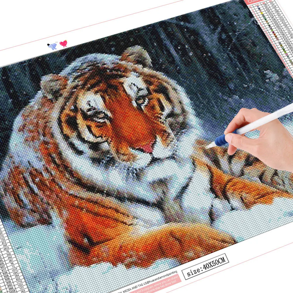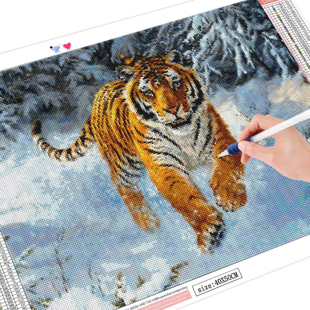 Алмазная 5d картина HUACAN с тигром, мозаика сделай сам, картины, полная выкладка, круглая вышивка, животное, ручная работа, настенное искусство