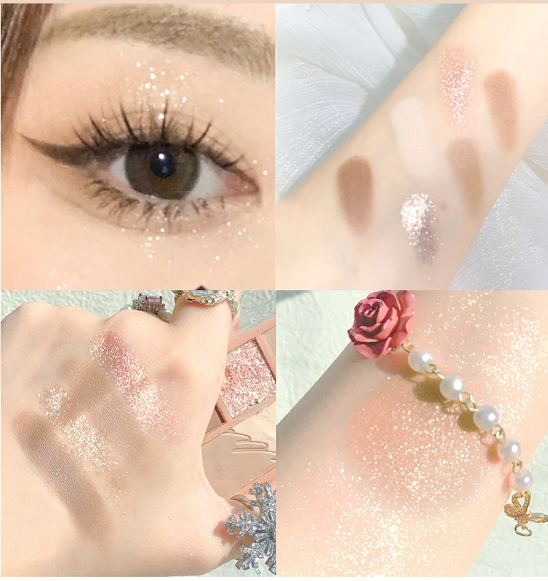 Палитра блестящих теней для век 6 цветов, матовые мерцающие тени дл...