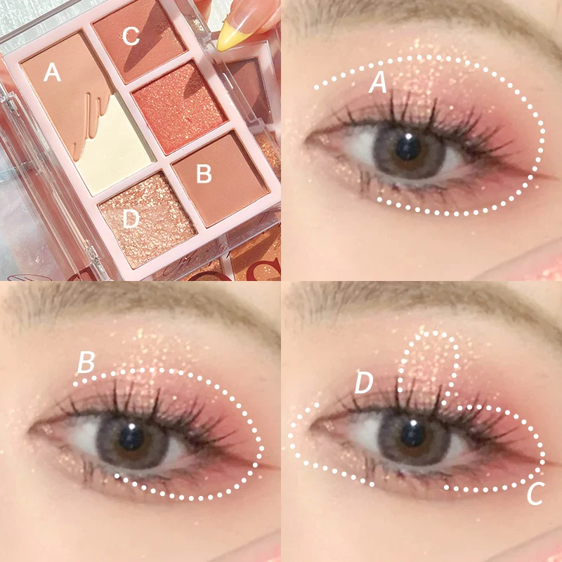 Миниатюрные 6-цветные тени для век, палитра для макияжа, блестящие ...
