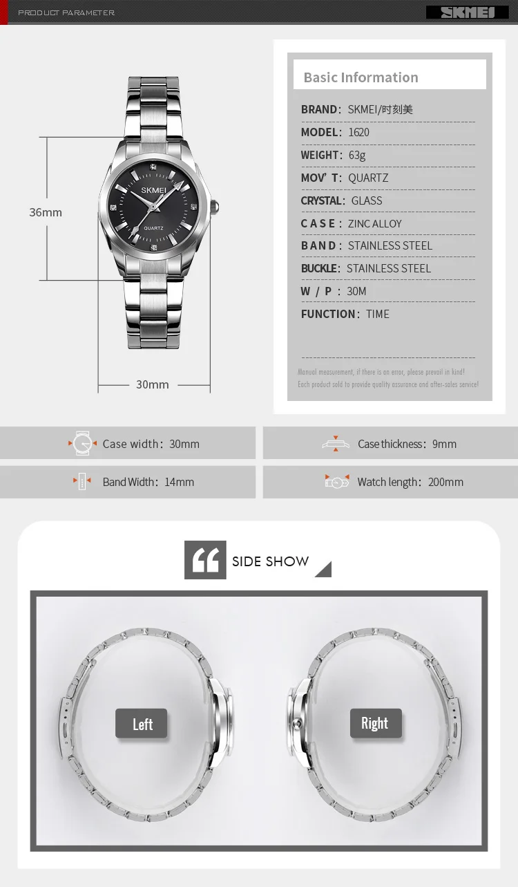 5 шт./лот SKMEI женские кварцевые часы роскошные женские часы для девочек водонепроницаемые женские наручные часы Relogio Feminino 1620