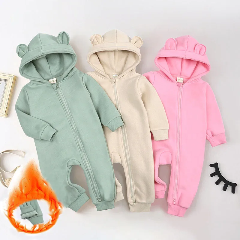 Комбинезон для мальчиков и девочек, зимний теплый флисовый комбинезон для новорожденных