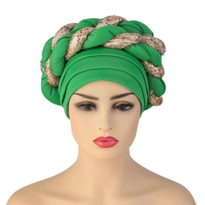 Модная женская шапка-тюрбан с блестками африканская коса с узлом же...
