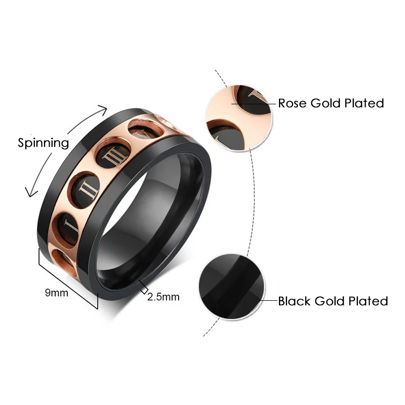 Мужское кольцо с римскими цифрами, вращающееся кольцо из нержавеюще...