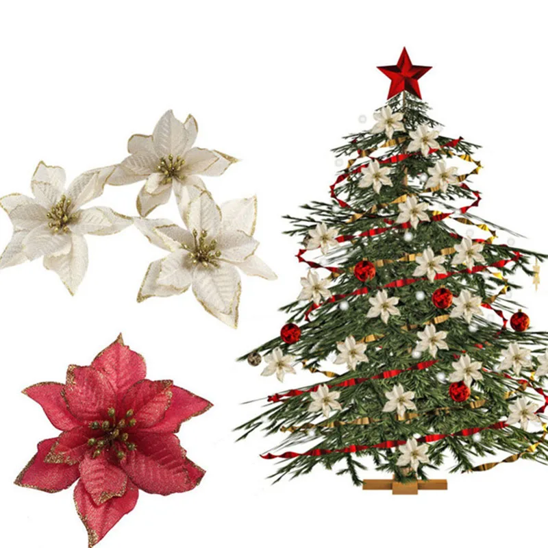 10 шт. пуансеттийный блестящий цветок, Рождественский Декор, венок,...