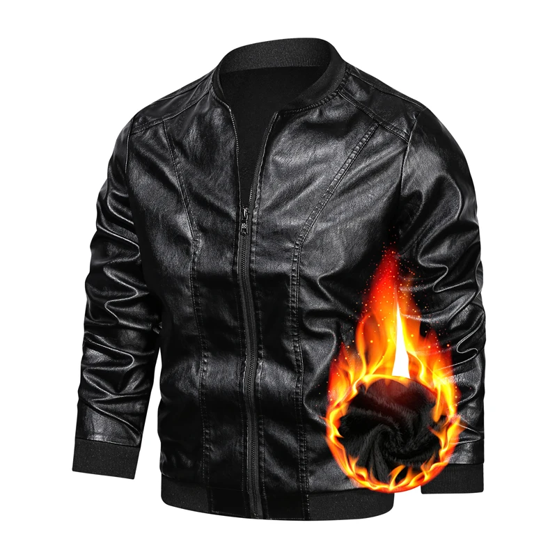 Мужская кожаная куртка, уличная ветрозащитная куртка, теплая однотонная верхняя одежда, для зимы