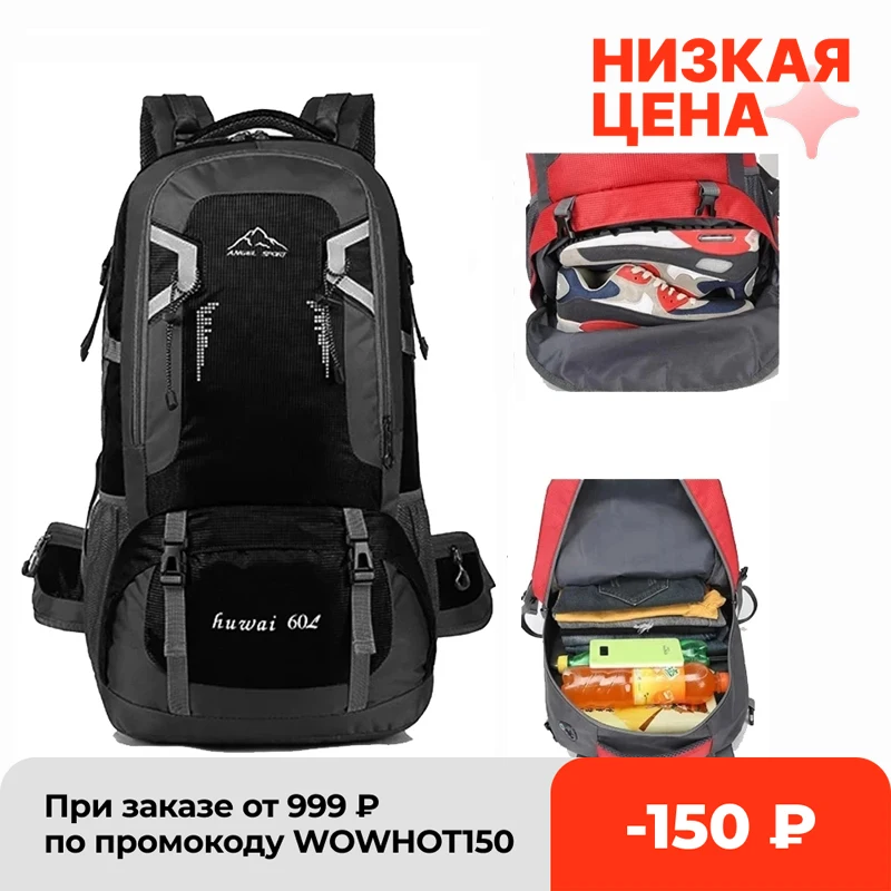 60L водонепроницаемый мужской рюкзак унисекс, дорожный рюкзак, спор...