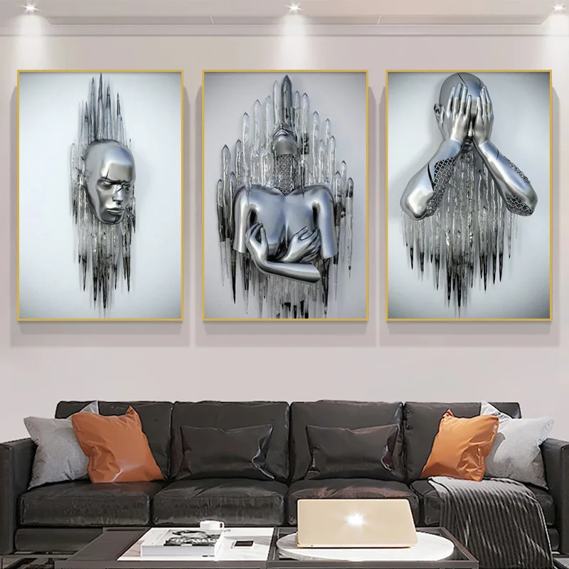 Металлическая фигурка, искусство, холст, картины, абстрактные плака...