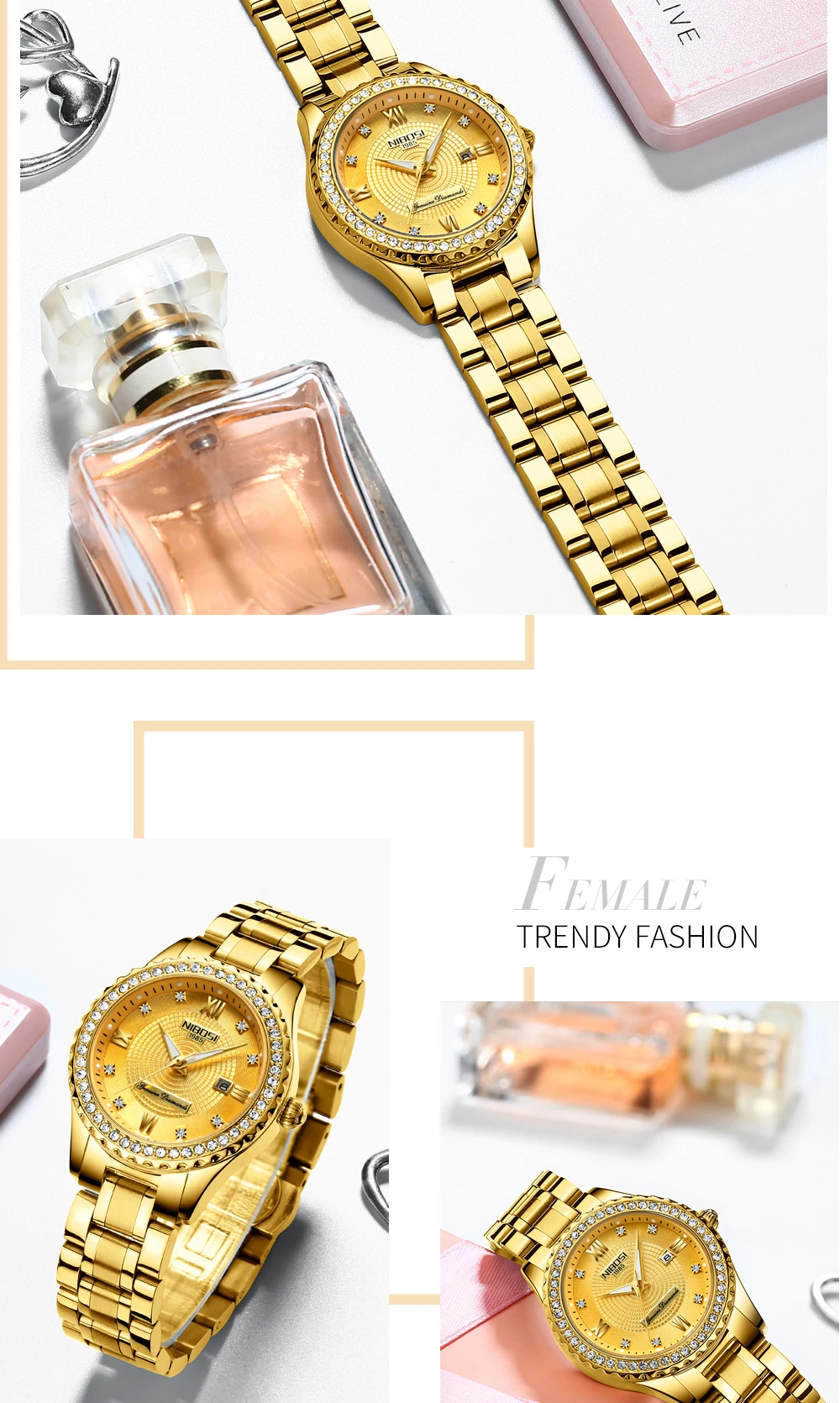 Часы наручные NIBOSI для влюбленных, брендовые роскошные золотистые...