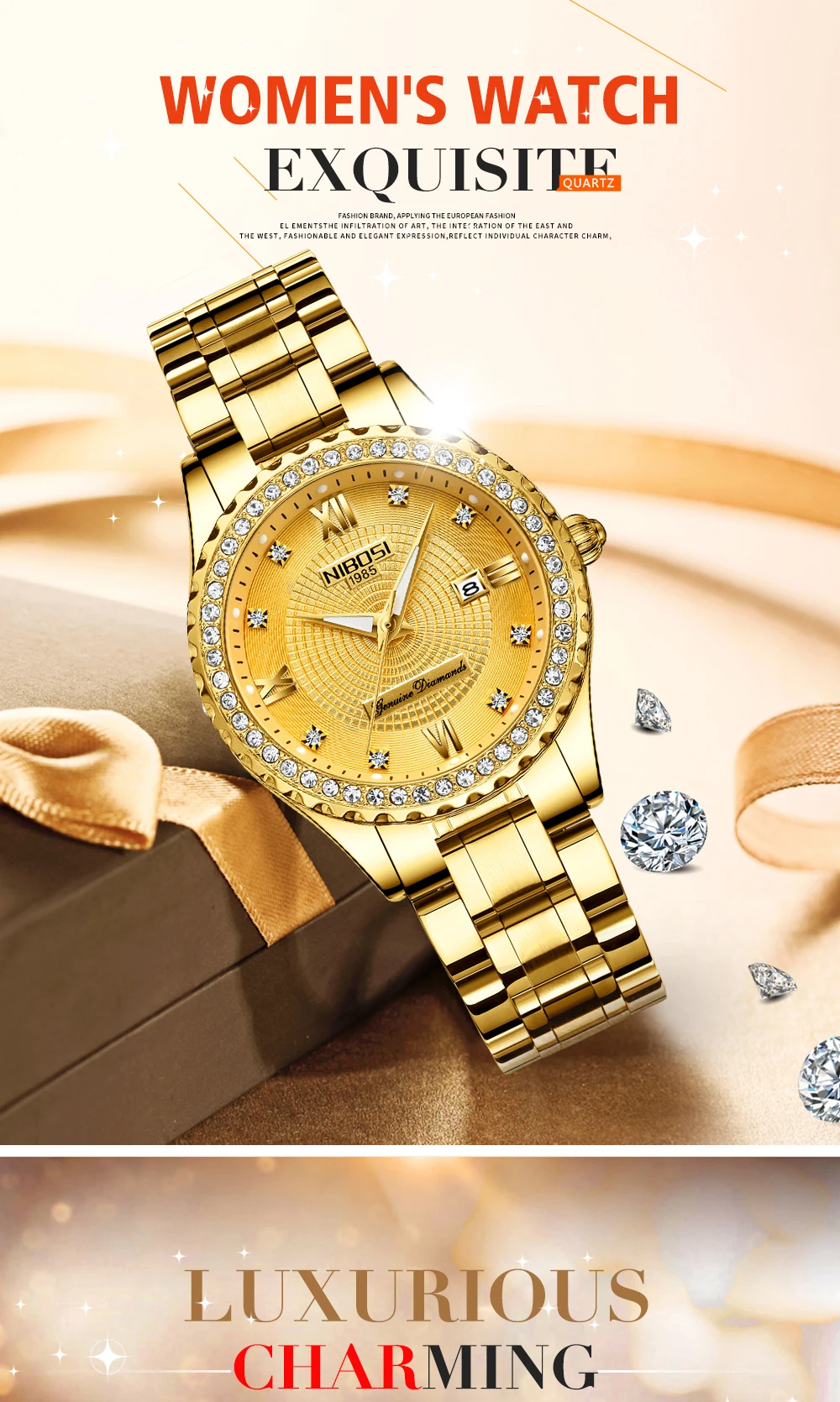 Часы NIBOSI женские, роскошные брендовые водонепроницаемые наручные...