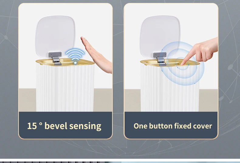 Особенности:1. Интеллектуальная индукция, площадь индукции удваивается.2. Супер герметичность3. Большая емкость 12л/15л4. Класс водонепроницаемости IPX55. Умная дезинфекция экономка 24 часа долгосрочная асептическая защита6. Длительный срок службы батареи (с использованием батарей, 2 батареи используется для 1 года)Упаковочный лист: 1 * умный мусорный бак (без батареи)
