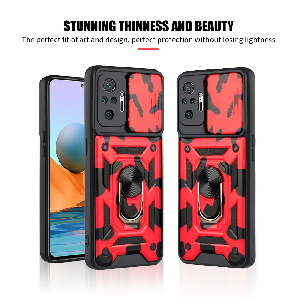 Защитный чехол с нажимной камерой для Xiaomi Redmi Note 10 Pro Redme Not 10Pro 10s Note10 4G, автомобильный камуфляжный чехол с магнитным кольцом