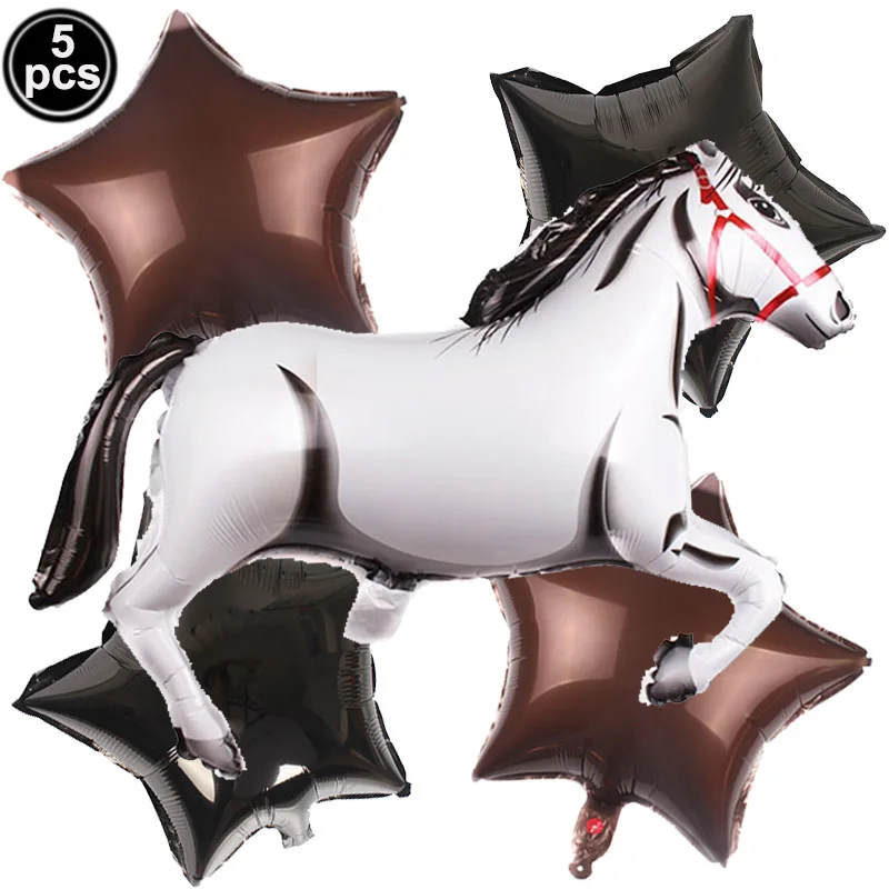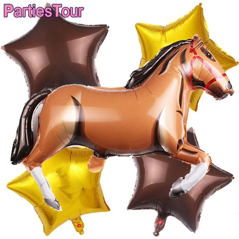 5 шт. скачки тема вечерние Декор баллоны включает лошадь Форма Фольга воздушные шары и звезд коричневого цвета, воздушные шары для верховой езды из День рождения вечерние