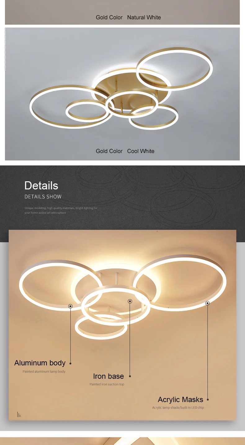 Светодиодный потолочный светильник, 2356 кольца, цвет белыйчерныйзолотой
