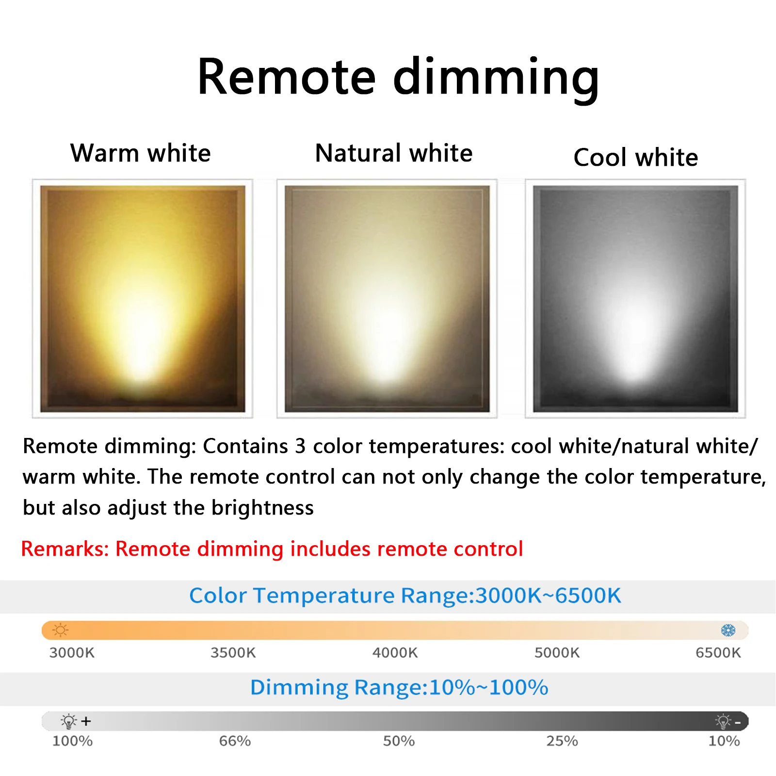 Диммируемый RC: не только 3 светильник, теплый белый и естественный белый и холодный белый, но также может затемнять яркость (с пультом дистанционного управления)