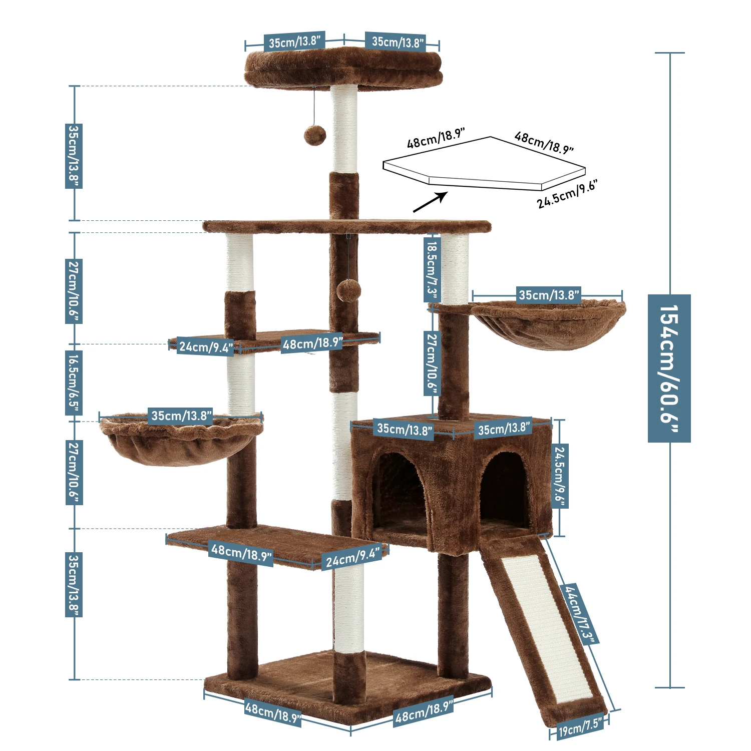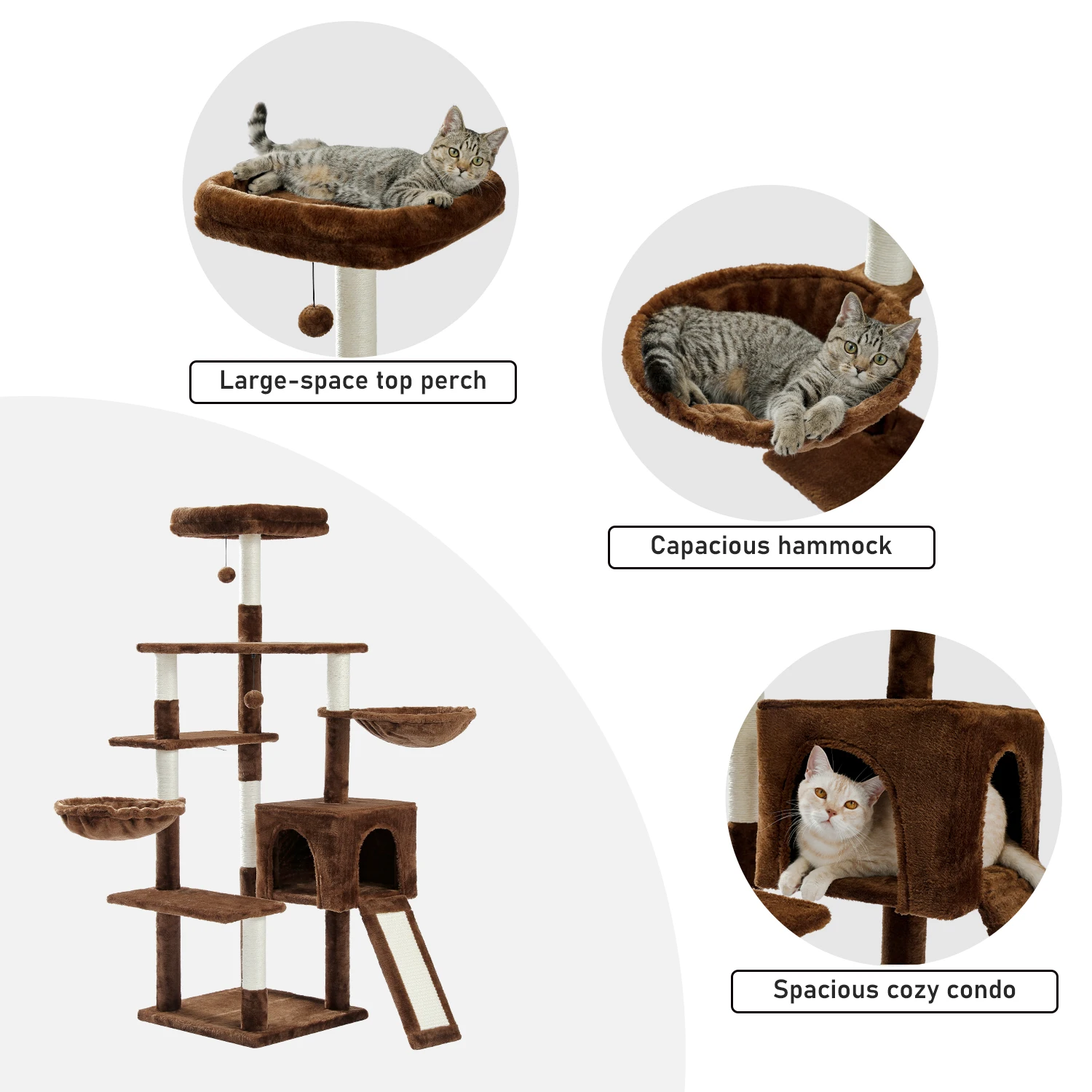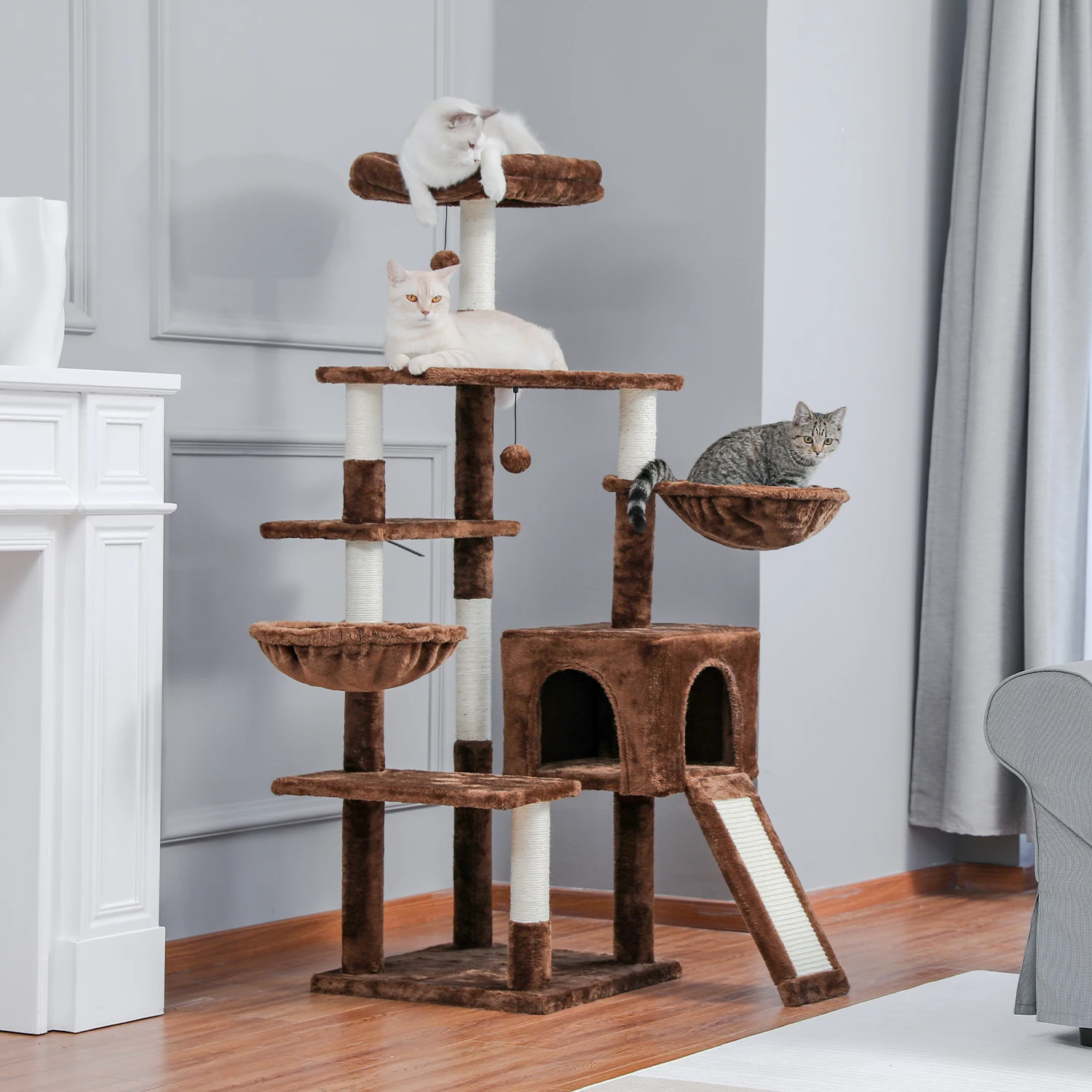 Домашняя площадка для кошек: первый комнатный домик для кошек сделан для лечения расстройства кошек, поэтому многоуровневые кошачьи деревья и башни выскакивают их питомцы, чтобы ваши кошки могли играть, отдыхать, упражнения дома. Лестница добавит больше уровней для альпинизма и качели гамак кровать под большими платформами является лучшим местом для котят. Множественные когтеточки либо покрыты сизалем веревочкой, либо смывной тканью удовлетворят кошачью природу заточки когтей с разным опытом царапин