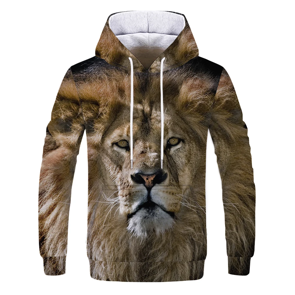 Мужской свитшот, Забавный 3D тигр, Лев, Модный женский пуловер с ри...