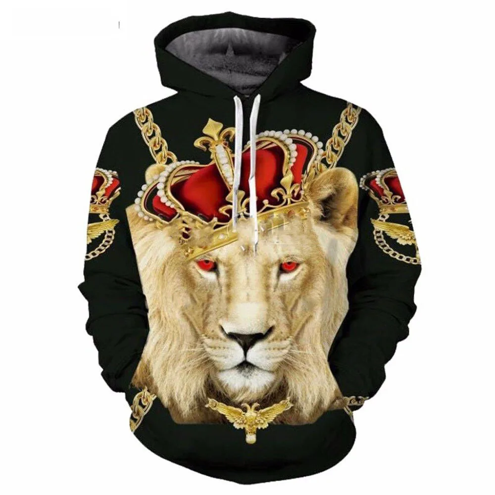 Толстовка с капюшоном для мужчин и женщин, модная кофта с 3D-принтом короля, цепочки, короны, Льва, Повседневная Уличная одежда в стиле Харадзюку