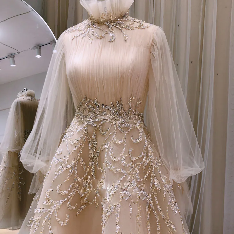 Женское платье для выпускного вечера, длинное платье цвета шампанского, в арабском стиле